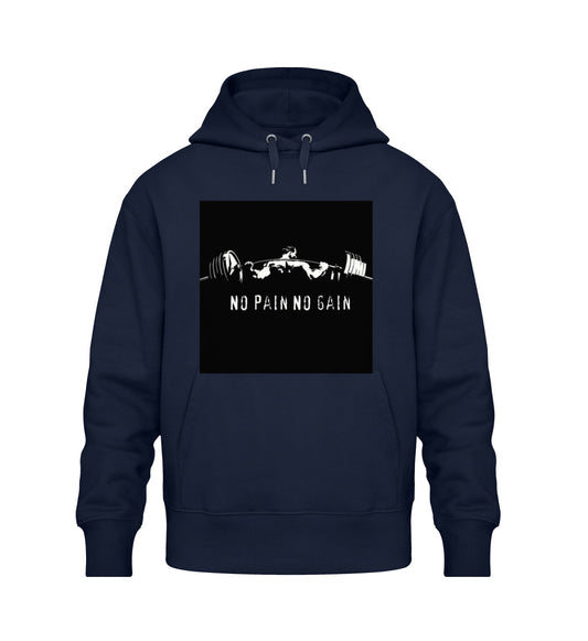NO PAIN NO GAIN - Gym Hoodie Oversized Frontprint - Unisex Organic